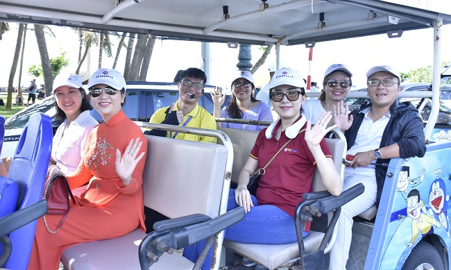 Khách tham gia trải nghiệm Free Walking Tour bằng xe điện từ Bãi Sau.