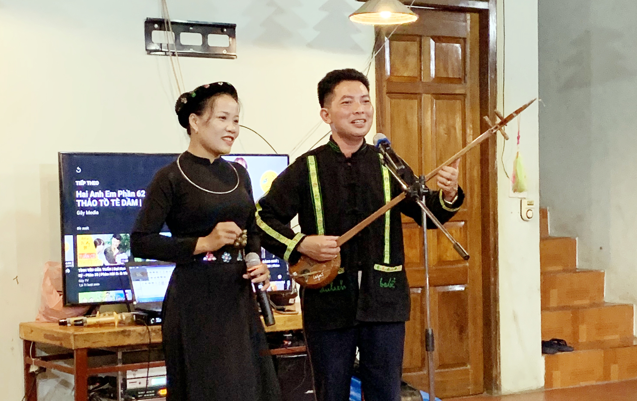 Hát Then phục vụ du khách tại khu du lịch homestay hồ Ba Bể.