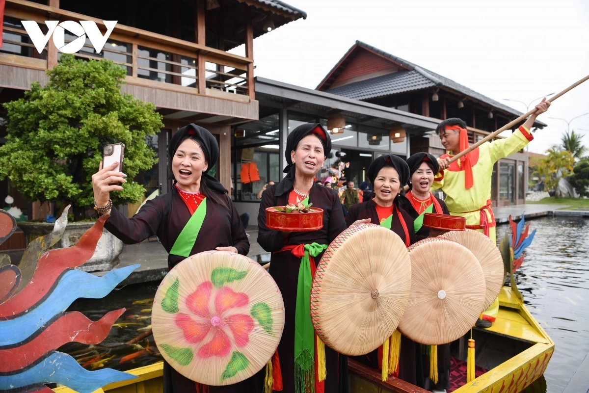 Du khách hoà mình vào những làn điệu dân ca quan họ mượt mà, đằm thắm