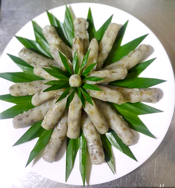 Lấy một ít dầu thoa lên tay. Sau đó, lấy một lượng bột vừa đủ rồi nặn thành những thanh dài với độ dài tùy thích. Cứ tiếp tục nặn như thế cho đến khi hết phần bột bánh. Bắc nồi lên bếp, thoa một lớp dầu mỏng lên trên khay hấp. Lần lượt xếp tất cả những thanh bánh đúc đã tạo hình vào nồi hấp và tiến hành hấp từ 12 - 15 phút trên lửa vừa. Sau đó, vớt bánh ra và cho ra dĩa. Hỗn hợp nước cốt dừa pha bột gạo cho sánh lại nêm tý muối đường, vani. Hỗn hợp mỡ hành gồm có muối, hành lá dầu mè dùng chung với bánh.
