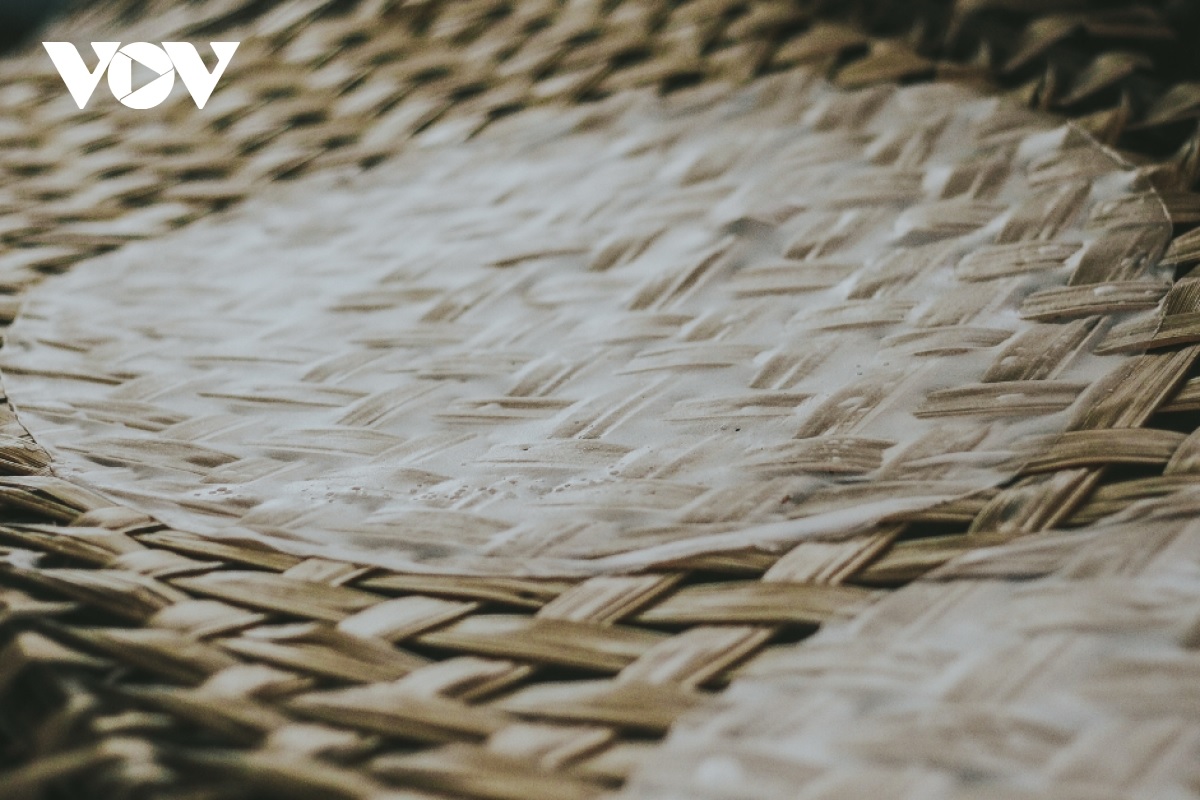 Thành quả của quá trình là những chiếc bánh tráng trắng muốt nằm trên phên tre