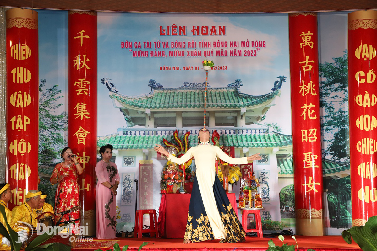 Tiết mục bóng rỗi Múa dâng bông của đoàn Đồng Nai tại Liên hoan Đờn ca tài tử và bóng rỗi tỉnh Đồng Nai mở rộng, tháng 2-2023.