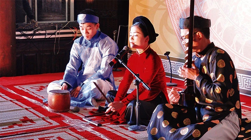 Biểu diễn ca trù trong một chương trình nghệ thuật tại Hà Nội. (Ảnh: Khiếu Minh)