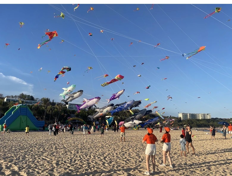 Hơn 16 giờ cùng ngày, hơn 100 cánh diều với nhiều hình dáng từ sinh vật biển như cá heo, mực, cá voi, cá… đã được thả lên tại bãi biển thu hút nhiều du khách trong và ngoài nước, người dân tỉnh Bình Thuận đến xem. Ban Tổ chức còn phát con diều miễn phí để cho du khách trải nghiệm thả diều trên biển.
