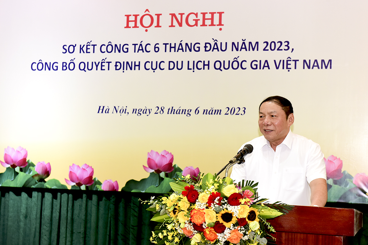 Phát biểu chỉ đạo hội nghị, Ủy viên BCH Trung ương Đảng, Bộ trưởng Bộ VHTTDL Nguyễn Văn Hùng chúc mừng những thành tựu mà Tổng cục Du lịch đã đạt được trong thời gian vừa qua. Hội nghị sơ kết hôm nay có ý nghĩa quan trọng trước thời điểm ngày 01/7/2023 Cục Du lịch Quốc gia Việt Nam chính thức đi vào hoạt động. Bộ trưởng nhấn mạnh, tuy mô hình mới nhưng công việc không có gì thay đổi. Bộ trưởng mong rằng các lãnh đạo, cán bộ, công chức, viên chức của Cục Du lịch Quốc gia Việt Nam yên tâm công tác để có nhiều cống hiến, đóng góp có hiệu quả cho ngành Du lịch.