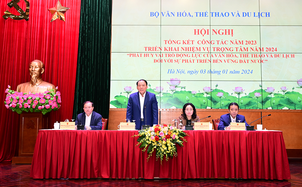 Năm 2023, nhờ sự quan tâm, chỉ đạo sát sao của lãnh đạo Đảng, Nhà nước, ngành văn hóa, thể thao, du lịch đã đạt được nhiều kết quả đáng ghi nhận, đạt nhiều thành tựu quan trọng. Song, Bộ trưởng nhấn mạnh trong năm 2024, toàn ngành cần tiếp tục đổi mới về tư duy để triển khai nhiều nhiệm vụ với yêu cầu cao hơn.