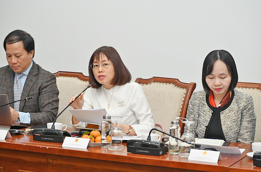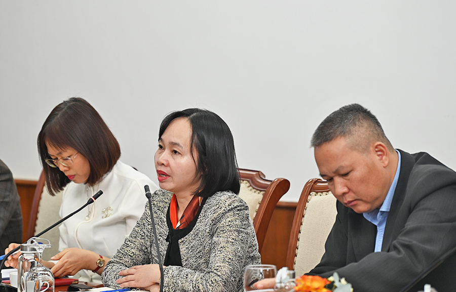 Phó Vụ trưởng Vụ Kế hoạch, Tài chính Nguyễn Thị Hồng Liên phát biểu tại buổi làm việc (Ảnh: TITC)