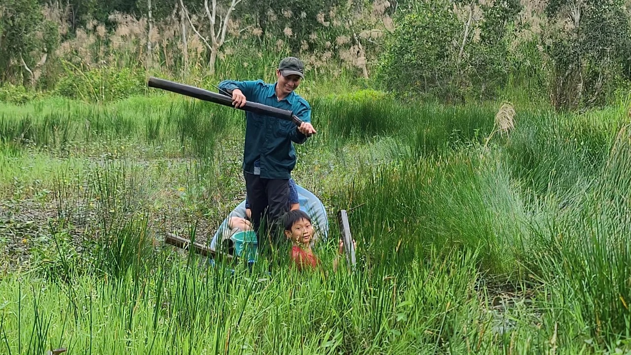 Bắt lươn đồng rừng U Minh Hạ - một trong những điểm nhấn của du lịch xanh thu hút du khách khi đến Cà Mau. Ảnh Hoàng Nam