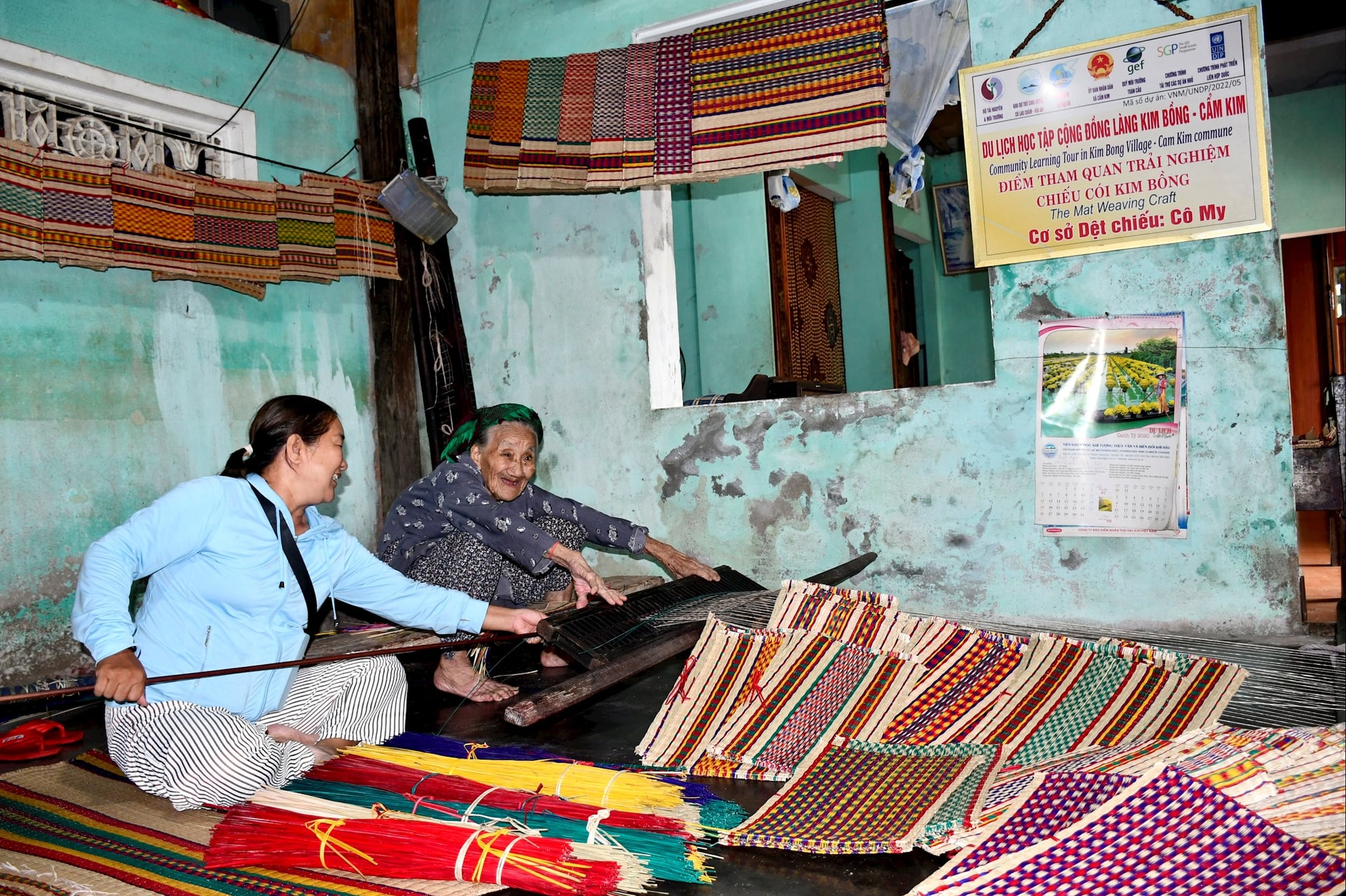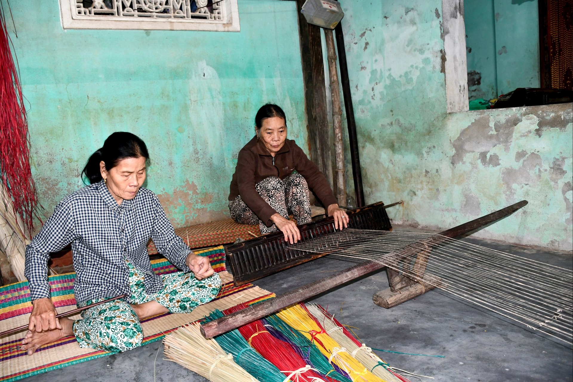 Trên địa bàn tổ dân phố Đông Hà có nhiều cơ sở dệt chiếu truyền thống để bán tiêu dùng và phục vụ du lịch. Ảnh: Quang Việt