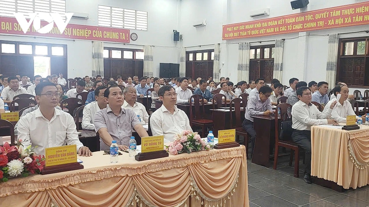 Tiến sĩ Lê Hoàng Xuyên, Bí thư Đảng ủy xã Tân Hòa phát biểu tại Hội nghị