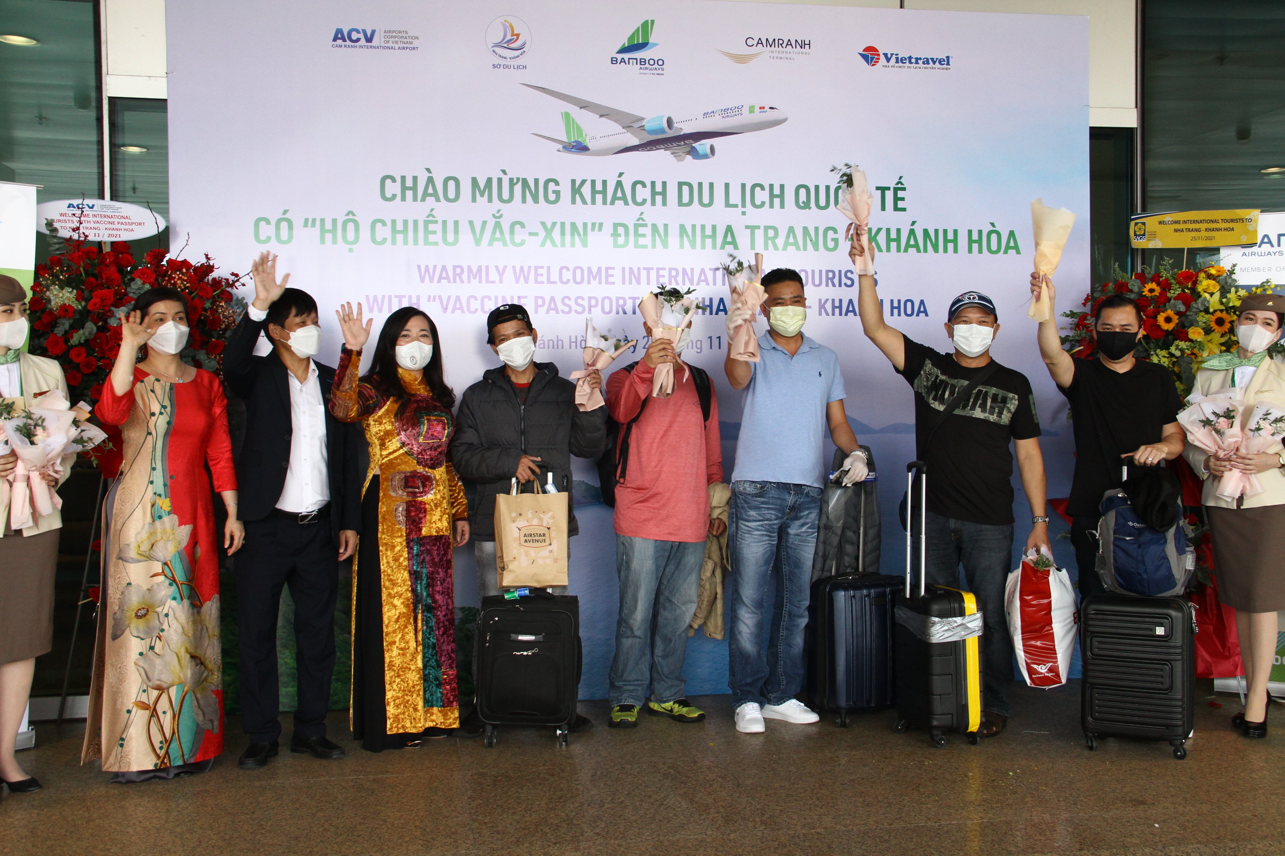 Lãnh đạo Cảng HKQT Cam Ranh, Sở Du lịch cùng các đơn vị đón đoàn khách quốc tế có “hộ chiếu vắc xin” đến Khánh Hòa ngày 25/11/2021