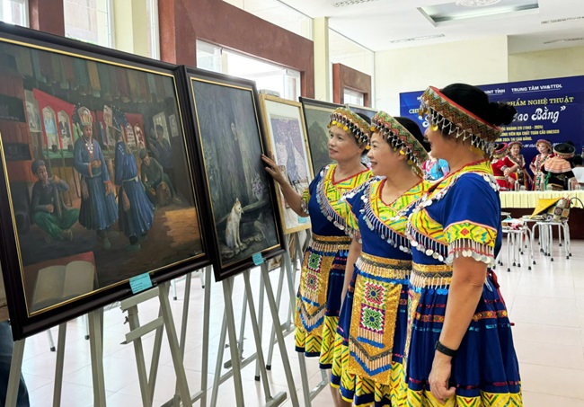Không gian trưng bày, triển lãm tranh “Sắc màu Non nước Cao Bằng” sẵn sàng phục vụ khách quốc tế và trong nước đến tham quan, khám phá.