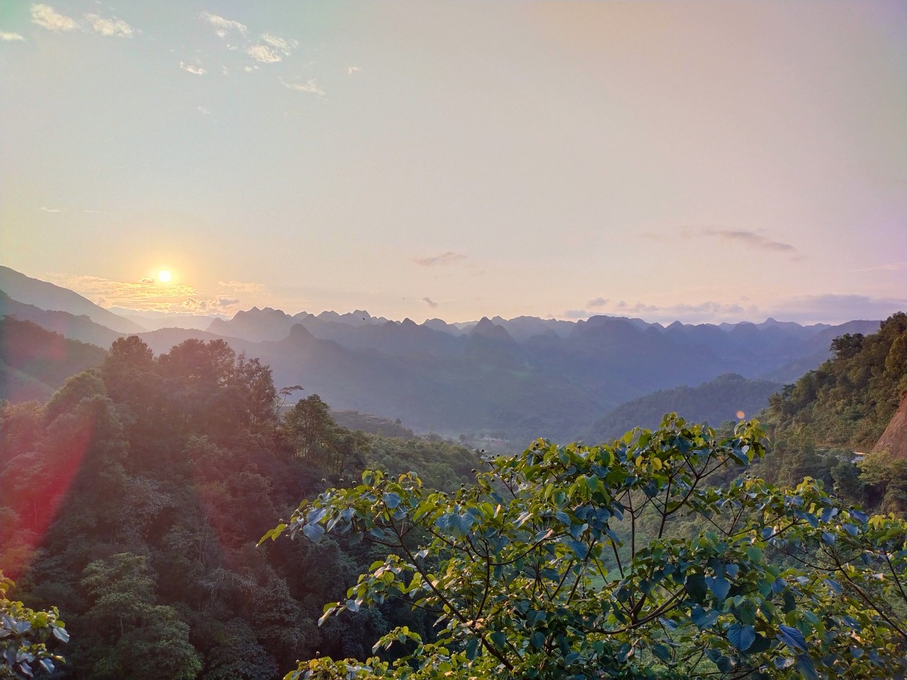 Đặc biệt, khi mặt trời ngả về Tây, quang cảnh hoàng hôn trên "Lưng rồng" mang một vẻ đẹp bình yên nhưng không kém phần choáng ngợp. Tại điểm ngắm cảnh của Công viên địa chất Non nước Cao Bằng, du khách được ngắm nhìn bầu trời biến hóa kỳ diệu từ sắc cam đến ánh đỏ hồng, điểm xuyết thêm chút mây trắng hòa cùng sắc xanh của rừng núi, đồng ruộng, chắc chắn bạn sẽ bị mê hoặc bởi cảnh sắc đẹp tựa chốn bồng lai của nơi đây.
