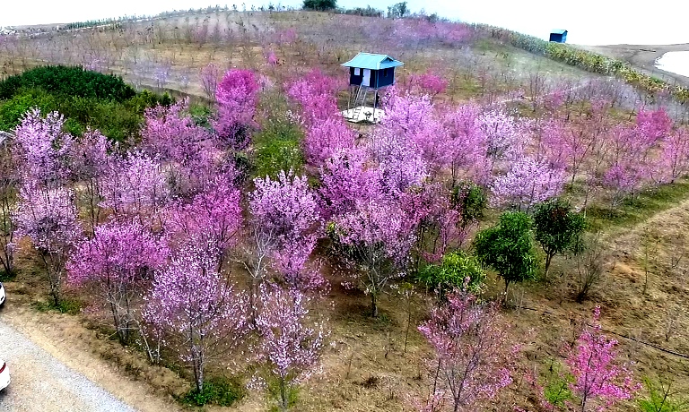 Vườn hoa Anh đào khi nhìn từ trên cao xuống.