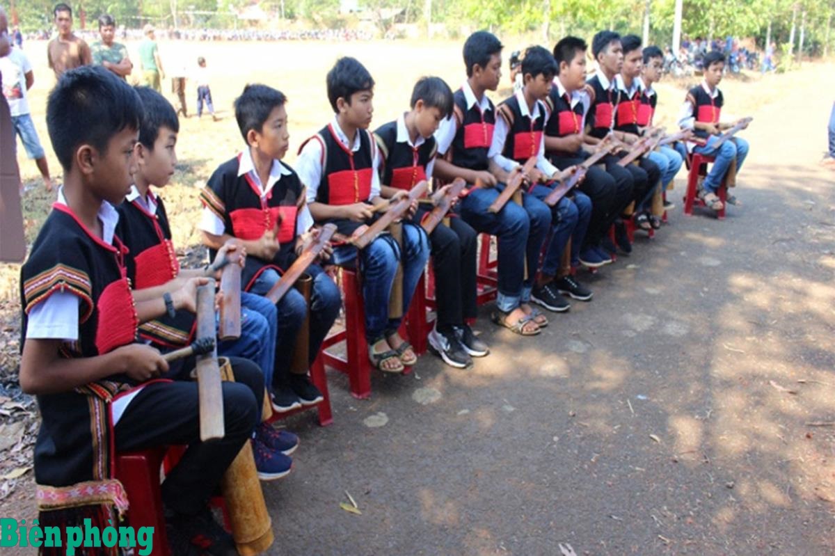 Học sinh một số trường trên địa bàn tỉnh Đắk Lắk được học nhạc cụ Ching kram. Ảnh: Thủy Lê