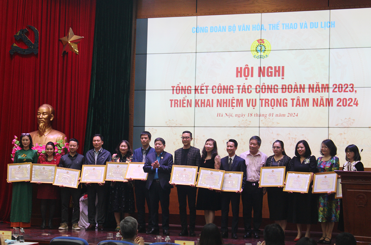 Khen thưởng của Công đoàn Viên chức Việt Nam và Công đoàn Bộ Văn hoá, Thể thao và Du lịch cho các các tập thể, cá nhân có thành tích xuất sắc trong hoạt động công đoàn năm 2023 (Ảnh: TITC)