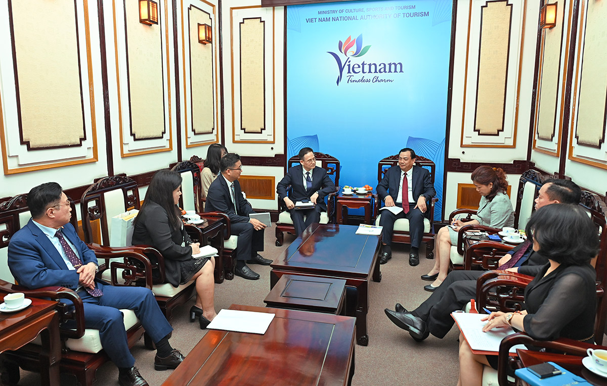 Cục trưởng Cục Du lịch Quốc gia Việt Nam Nguyễn Trùng Khánh tiếp ông Park Jong Kyung, Tham tán công sứ, Đại sứ quán Hàn Quốc tại Việt Nam. Ảnh: TITC