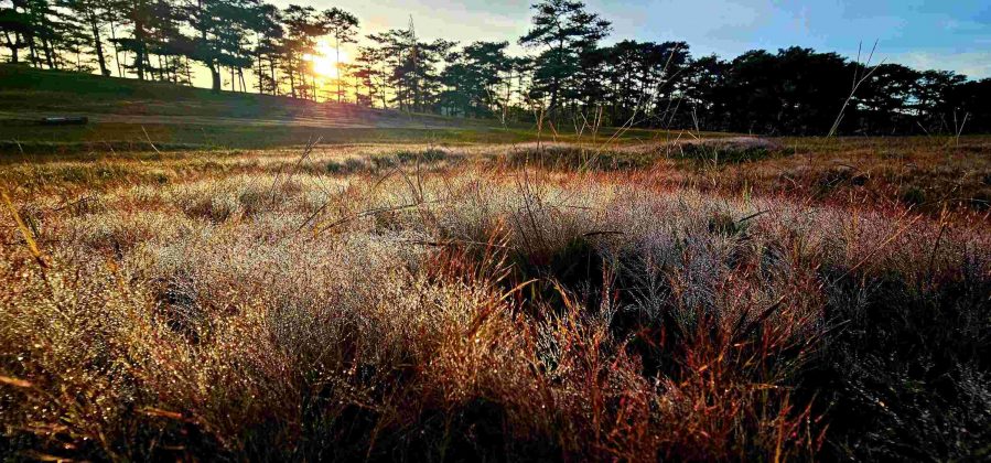 Khi sương sớm còn đọng trên lá và ánh nắng đầu ngày chiếu xuống, bề mặt cỏ phản chiếu ánh sáng tạo hiệu ứng lấp lánh như phủ một lớp tuyết mỏng. Vì vậy, người dân địa phương còn gọi đây là “mùa cỏ tuyết”. Ảnh: Bảo Ân