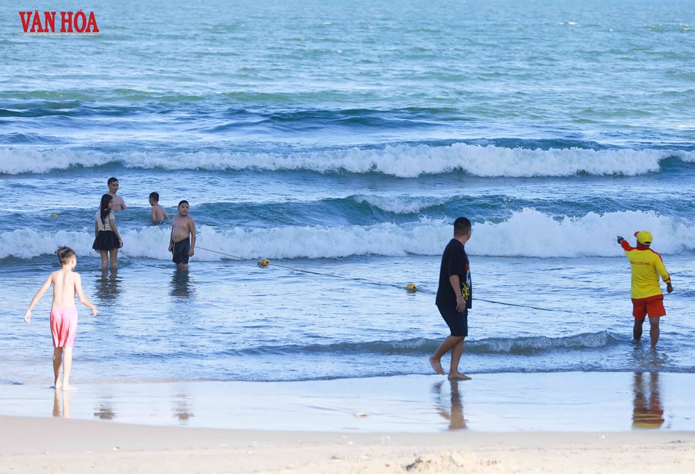 Lực lượng cứu hộ luôn túc trực nhắc nhở du khách vui chơi, tắm biển trong vùng an toàn