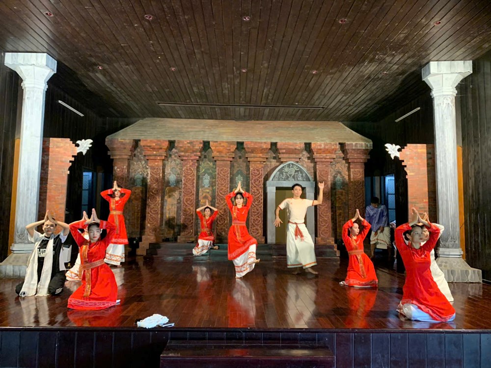 Các diễn viên Phòng Văn hóa và Nghệ thuật tập luyện chuẩn bị chương trình “Đêm Mỹ Sơn huyền thoại”