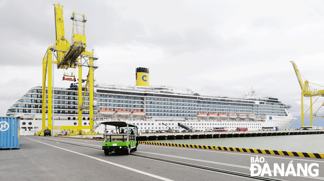 Đà Nẵng có nhiều tiềm năng để phát triển thị trường khách du lịch tàu biển.Trong ảnh: Một tàu du lịch cập cảng tại Tiên Sa. Ảnh: T.H