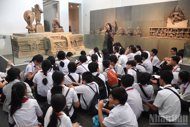 Học sinh Trường trung học cơ sở Lê Thị Hồng Gấm, thành phố Đà Nẵng trong giờ học ngoại khoá tại Bảo tàng Điêu khắc Chăm.