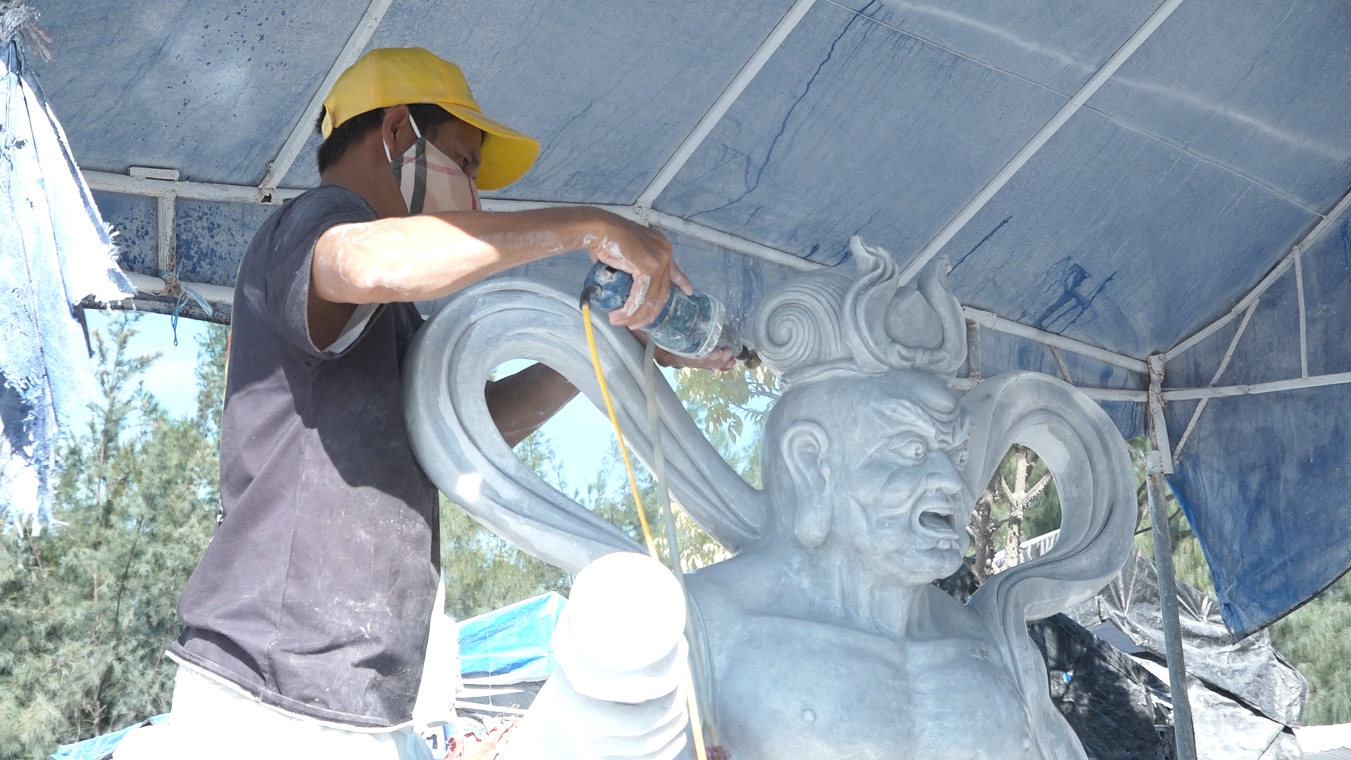 Chế tác tượng tại Làng đá mỹ nghệ Non Nước, phường Ngũ Hành Sơn. Ảnh: Hoàng Hiệp