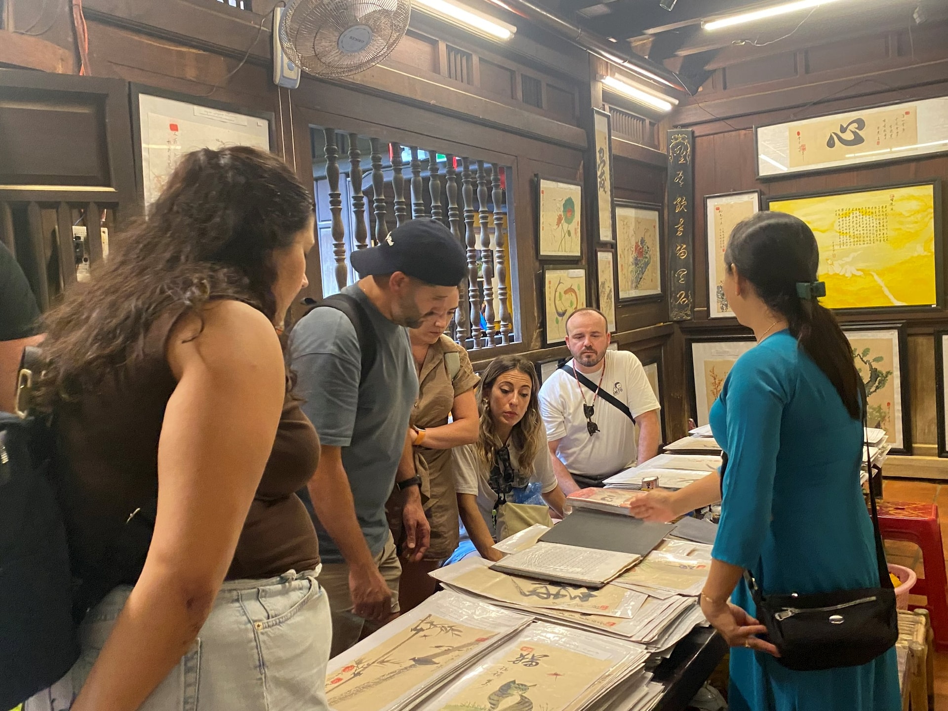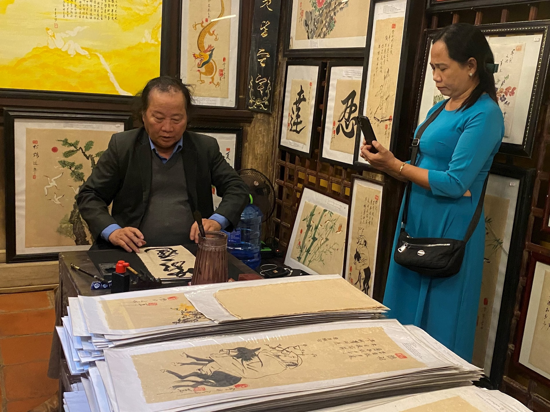 Du khách có thể trải nghiệm học viết chữ nho tại bảo tàng chuyên đề Hội An. Ảnh: Vĩnh Lộc