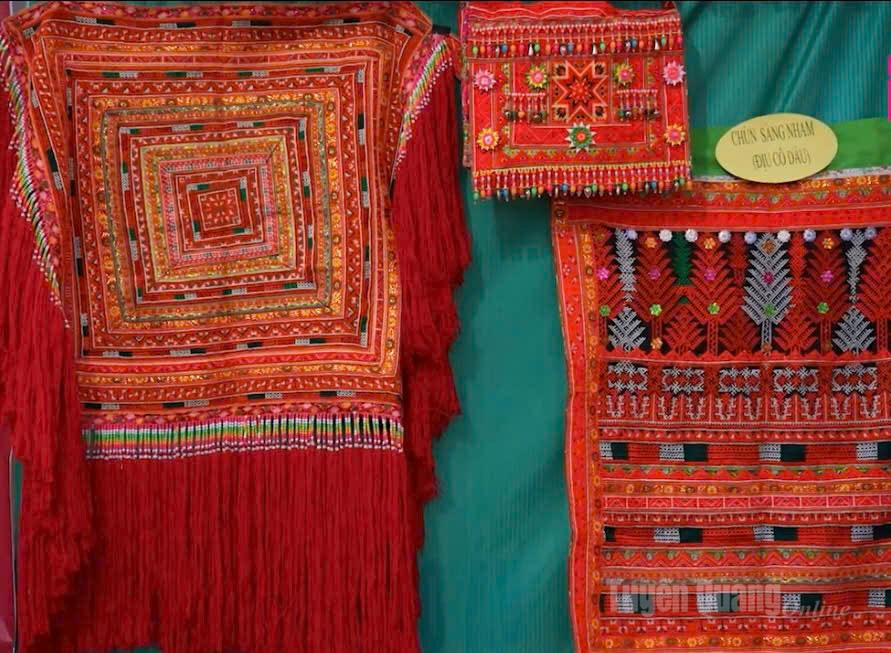 Trang phục truyền thống nữ dân tộc Pà Thẻn chủ yếu là sắc đỏ rực rỡ, ấn tượng trên nền xanh của núi rừng.