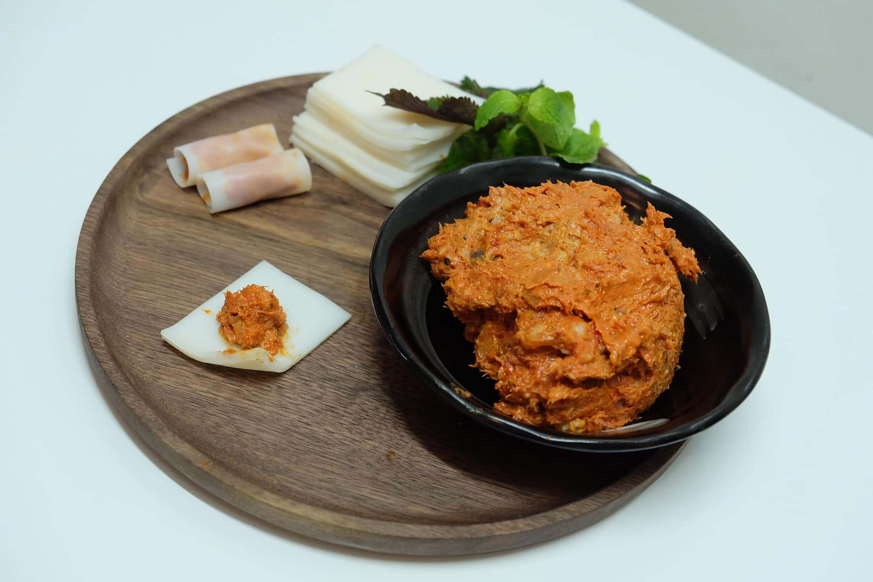 “Nhân được xay nhuyễn nhưng khi ăn vẫn cảm nhận được rõ hương vị của tôm và không còn mùi tanh, kết hợp vị béo ngậy của thịt ba chỉ càng thêm hấp dẫn”, chị Thảo nói.