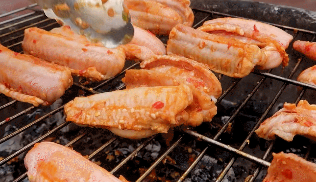 Ướp xong, chờ chừng 15-20 phút cho thịt cá ngấm đều gia vị thì bắt đầu nướng trên bếp củi (hoặc bếp than), giúp món ăn đậm đà, dậy mùi thơm.