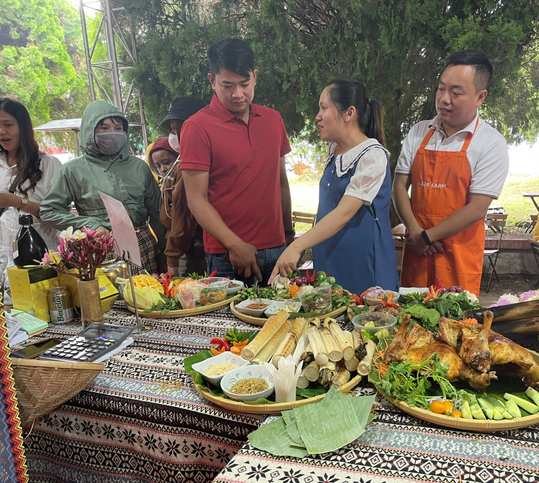 Du khách tham quan, thưởng thức món ăn truyền thống tại Ngày hội Văn hóa các dân tộc tỉnh Đắk Lắk năm 2023.