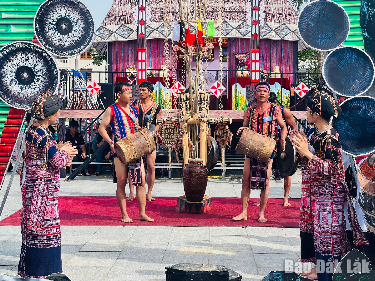 Đồng bào dân tộc thiểu số tỉnh Đắk Lắk biểu diễn cồng chiêng truyền thống, góp phần bảo tồn và phát huy giá trị văn hóa bản địa. Ảnh: Thiên Lý