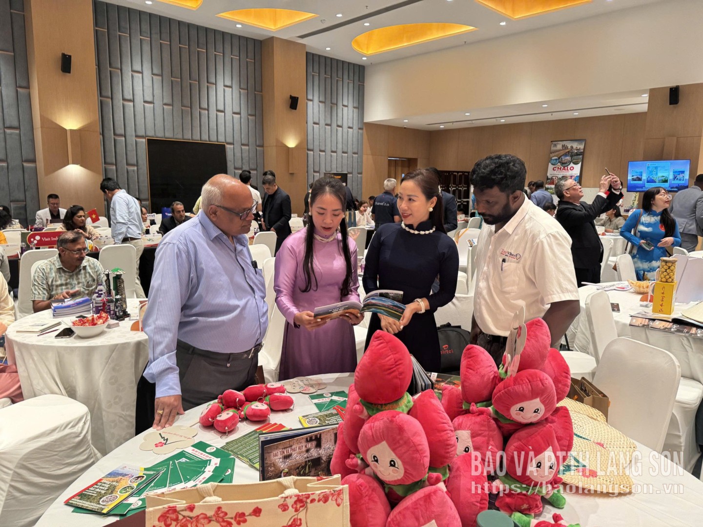 Lãnh đạo và cán bộ Trung tâm Xúc tiến Đầu tư, Thương mại và Du lịch tỉnh giới thiệu thông tin về du lịch Lạng Sơn cho các đại biểu, doanh nghiệp đối tác Ấn Độ trong Chương trình giới thiệu du lịch Việt Nam tại Ấn Độ năm 2025
