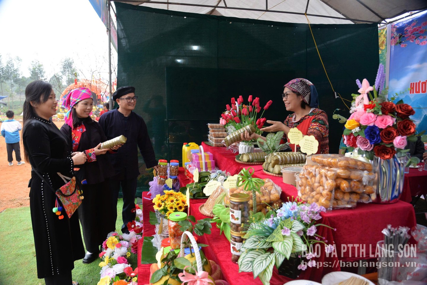 Du khách trải nghiệm và mua các sản phẩm OCOP tại Lễ hội hoa đào xã Vũ Lễ năm 2026