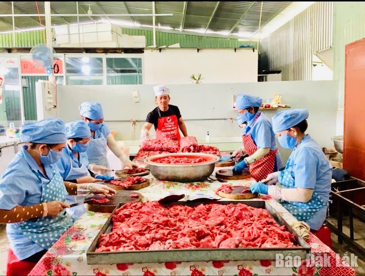 Quy trình sản xuất bò một nắng của Công ty TNHH Sản xuất thực phẩm A Lý (phường Tuy Hòa). Ảnh: CTV