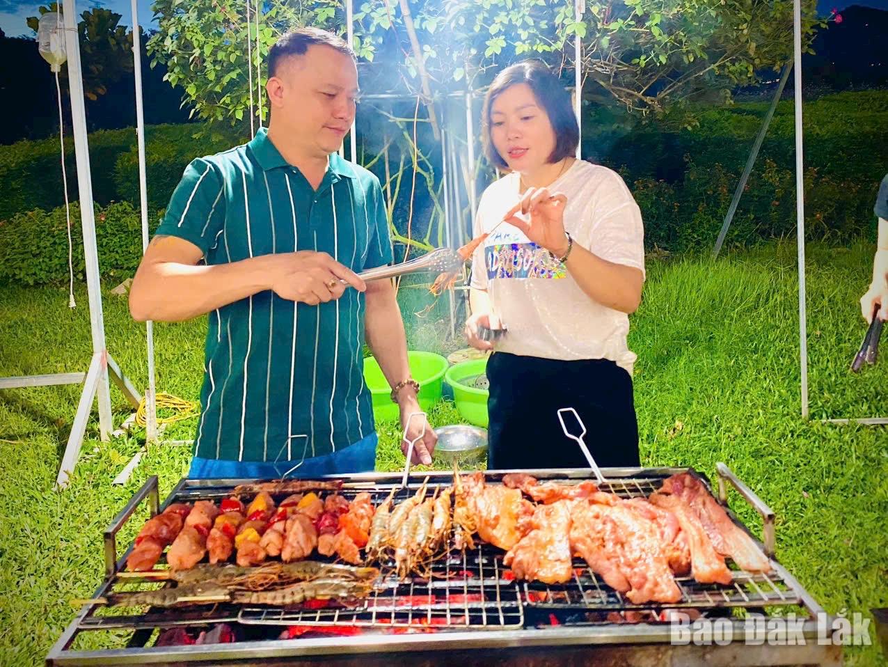Du khách thưởng thức hải sản và thịt nướng ở cao nguyên Vân Hòa (xã Vân Hòa). Ảnh: CTV