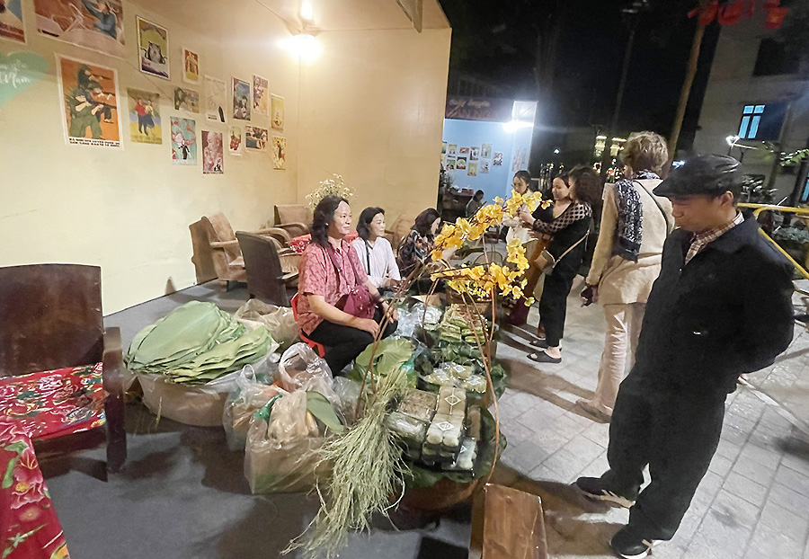 Quầy hàng cốm làng Vòng trên tuyến phố đi bộ (Ảnh: TITC)