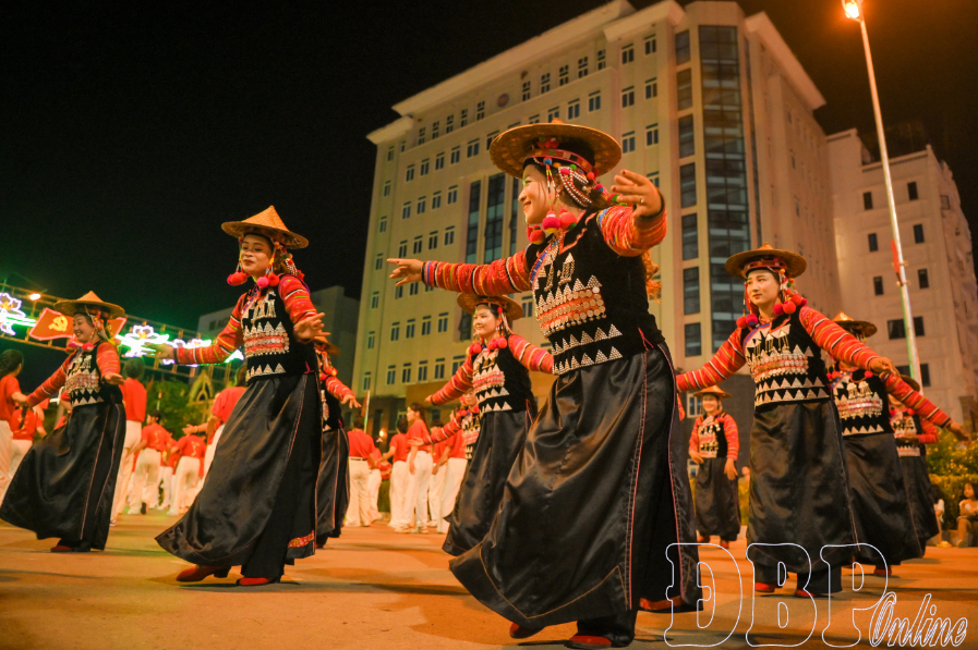 Biểu diễn múa dân tộc Hà Nhì tại lễ hội đường phố trong khuôn khổ Festival Tinh hoa Tây Bắc - Điện Biên năm 2025.