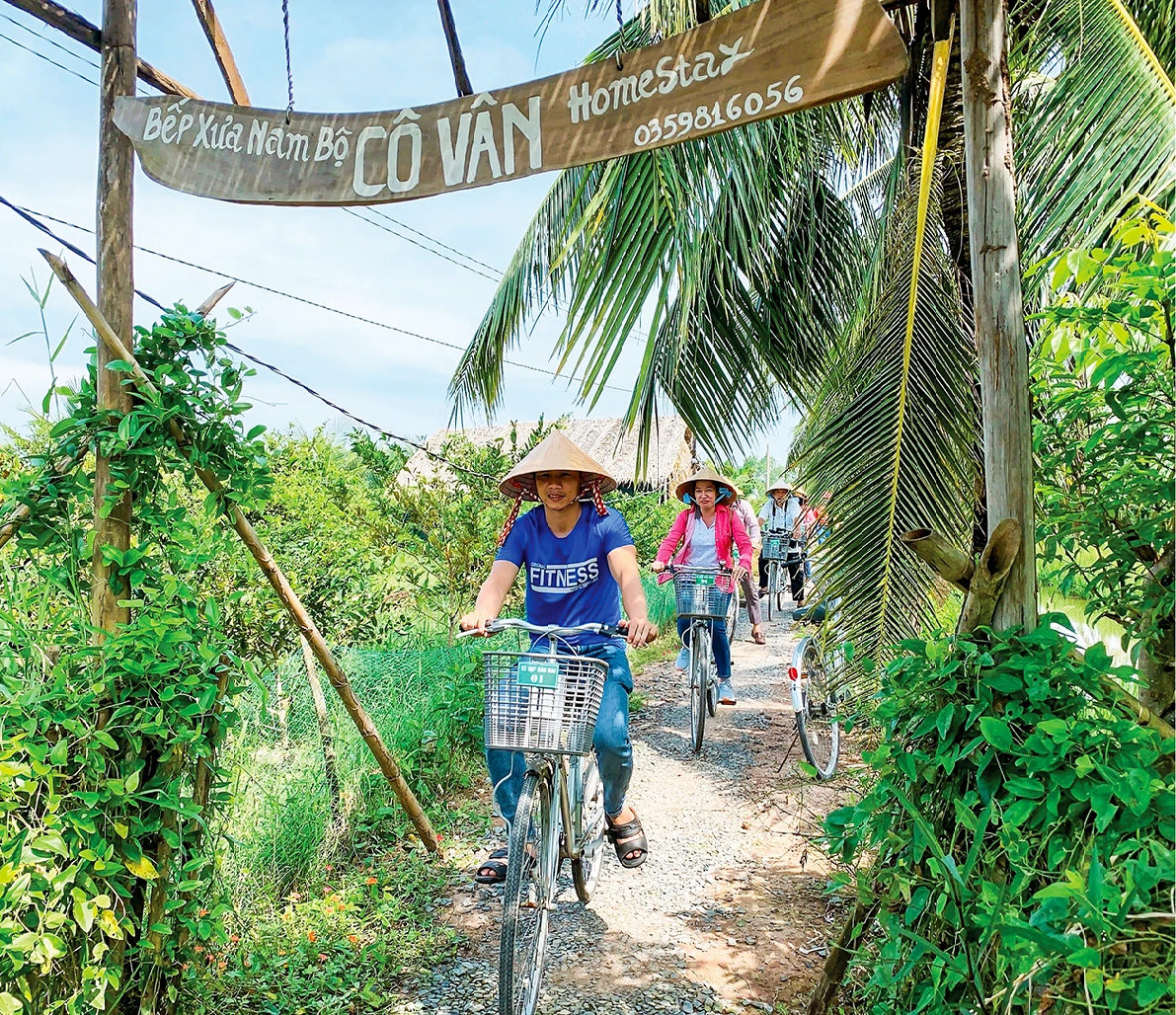 Đạp xe là hoạt động thường có trong các trải nghiệm khi đến cồn Chim (Vĩnh Long).