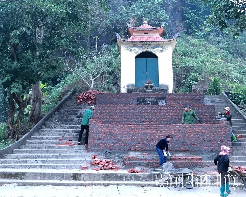 Miếu thờ Nàng Cúc nơi cửa mường ở núi Đồng Than đang được tu sửa để chuẩn bị tổ chức lễ hội.