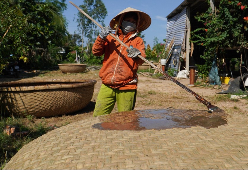 Công đoạn quét nhựa cho thúng chai để chống ngấm, rò rỉ nước. Ảnh: ĐT.