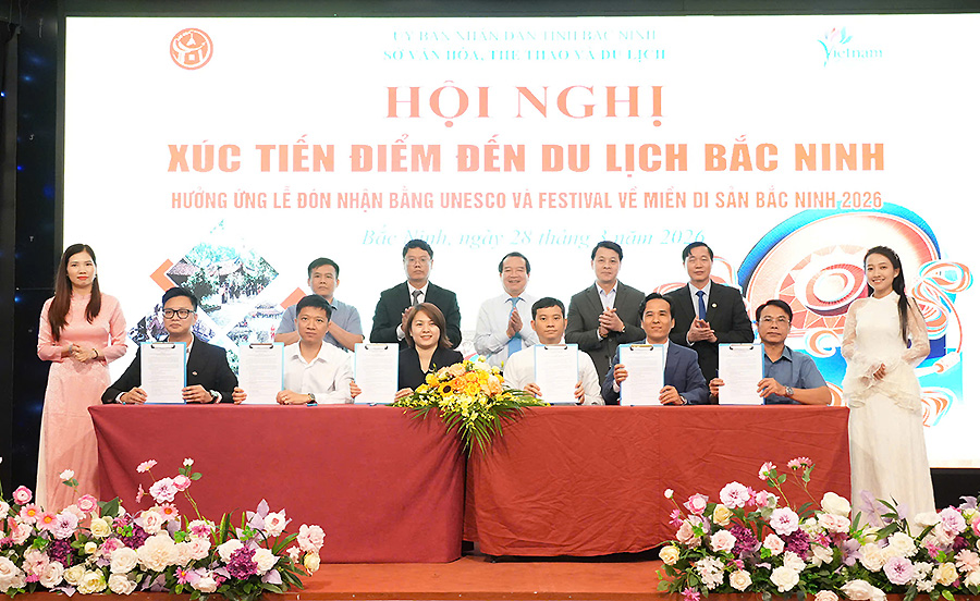 Trong khuôn khổ Hội nghị đã diễn ra lễ ký kết hợp tác trao đổi, xây dựng, liên kết sản phẩm, dịch vụ du lịch giữa các doanh nghiệp du lịch Bắc Ninh, đơn vị lữ hành, đơn vị cung ứng dịch vụ.