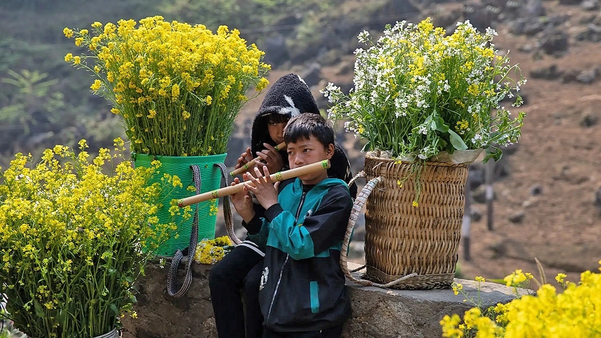 Thổi sáo truyền thống của người Mông cho du khách trải nghiệm tại điểm dừng chân dốc Thẩm Mã.