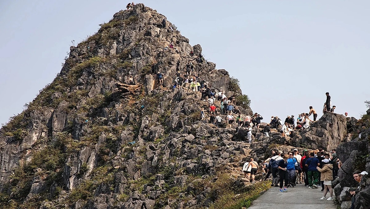Khung cảnh dốc Thẩm Mã nhộn nhịp với những du khách đi xe máy chụp ảnh với những người địa phương bán đồ ăn và quà lưu niệm.