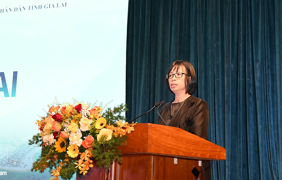 Phó Chủ tịch UBND tỉnh Gia Lai Nguyễn Thị Thanh Lịch phát biểu tại Diễn đàn. Ảnh: TITC