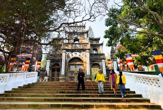 Du khách trải nghiệm không gian chùa Hương, nơi các giá trị văn hóa truyền thống đang được gắn kết với sản phẩm du lịch xanh, du lịch cộng đồng - Ảnh: VGP/Minh Anh.