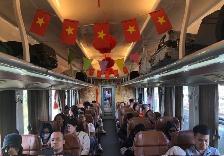 Giờ phút cả nhà đoàn viên trên tàu rất thú vị, anh Phạm Minh Thành hồ hởi chia sẻ. Tàu sạch đẹp, trang trí bắt mắt, không khí tại toa cộng đồng sôi nổi, nhộn nhịp, chương trình ca nhạc hấp dẫn, mọi người vỗ tay, hát theo, hào hứng check-in, chụp ảnh.