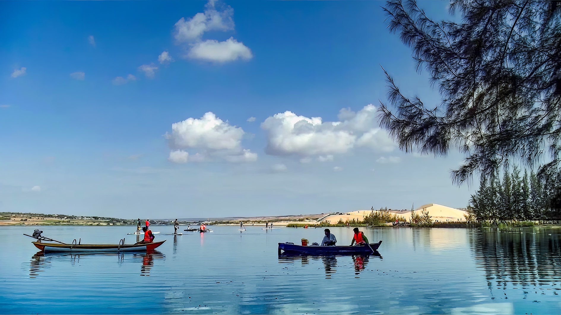 Các trải nghiệm ven hồ ở thắng cảnh Bàu Trắng. Ảnh: Ngọc Lân