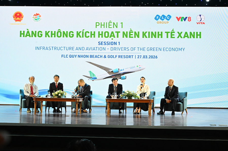 Phiên thảo luận về "Hạ tầng & Hàng không kích hoạt nền kinh tế xanh" quy tụ các chuyên gia hàng đầu như PGS.TS Nguyễn Thiện Tống, đại diện Cục Hàng không Việt Nam, lãnh đạo Bamboo Airways, cùng các nhà đầu tư quốc tế, tập trung làm rõ vai trò của hàng không trong việc mở rộng không gian phát triển.